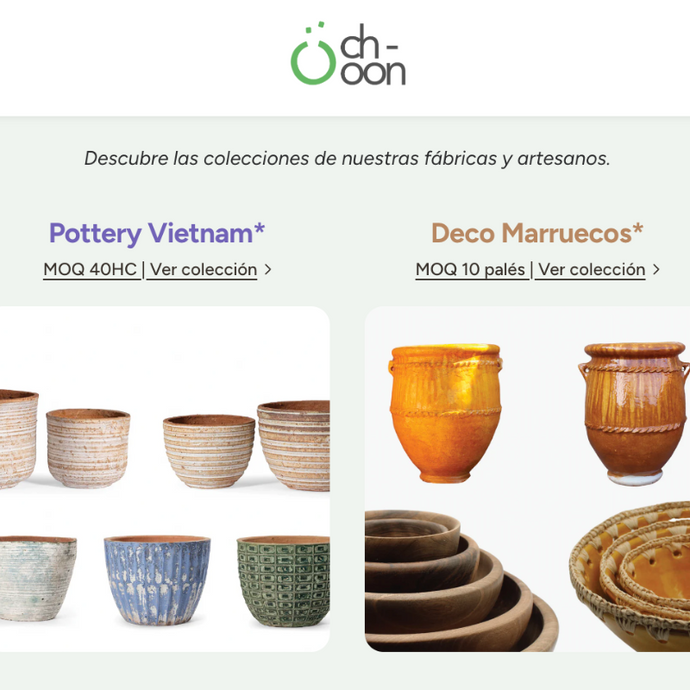 Si eres un minorista o un profesional del sector Hogar y Jardín, regístrate en la Comunidad Chöon: crea tu cuenta de usuario y podrás ver las tarifas reducidas, crear colecciones propias, descargarte material de marketing y mucho más.